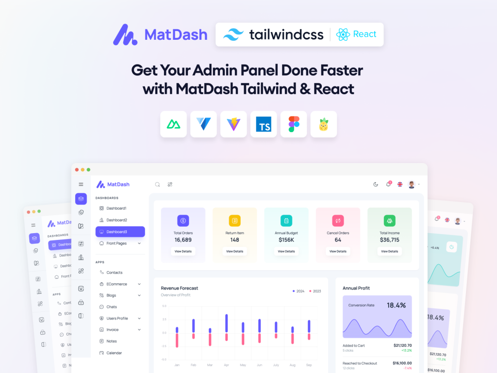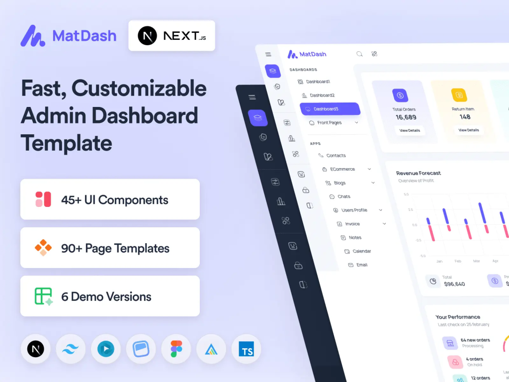 Matdash is a lightweight and fast e-commerce admin template made for Next.js & React projects. With its clean code structure and optimized performance, it’s perfect for modern online stores.