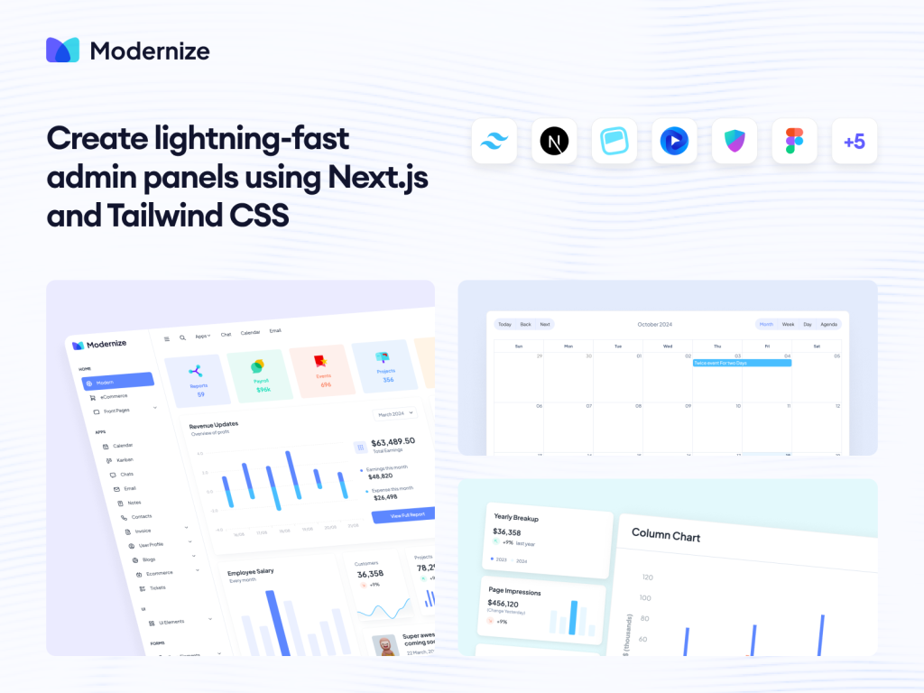 Modernize is one of the most modern and stylish dashboard templates for e-commerce. It provides a sleek UI with both light and dark mode support, making it ideal for creating visually appealing admin panels.