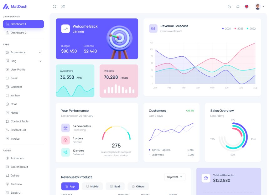 MatDash Angular Admin Dashboard Template is developer friendly and multipurpose admin panel template build on top of Material Angular. It helps you to speed up your web development 10x by offering you ready to use components, amazing dashboard variations, application design, dark and light color skins, RTL support and much more.